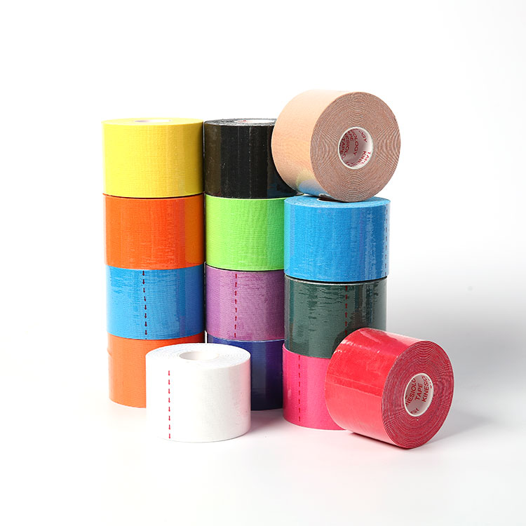 In kinesiologia tapes 5cm fabricae bombicis plus quam 170 P. pensantes et certae et tutae glutinis usus, ad usorum necessitates ad glutinosum et solatium destinata. Quod magis laudabile est, valida ductilis et impervia respiratio huius taeniolae, ut cutis saginatum et incommodum non sentiat, et simul cum musculis et articulis corporis tueri et cooperari possit. Haec taeniola etiam ad usum aptissimum est. Omnibus corporis partibus convenit, facile secari, facile avellere, sed per se non facile decidere, fiducialiter uti potes.